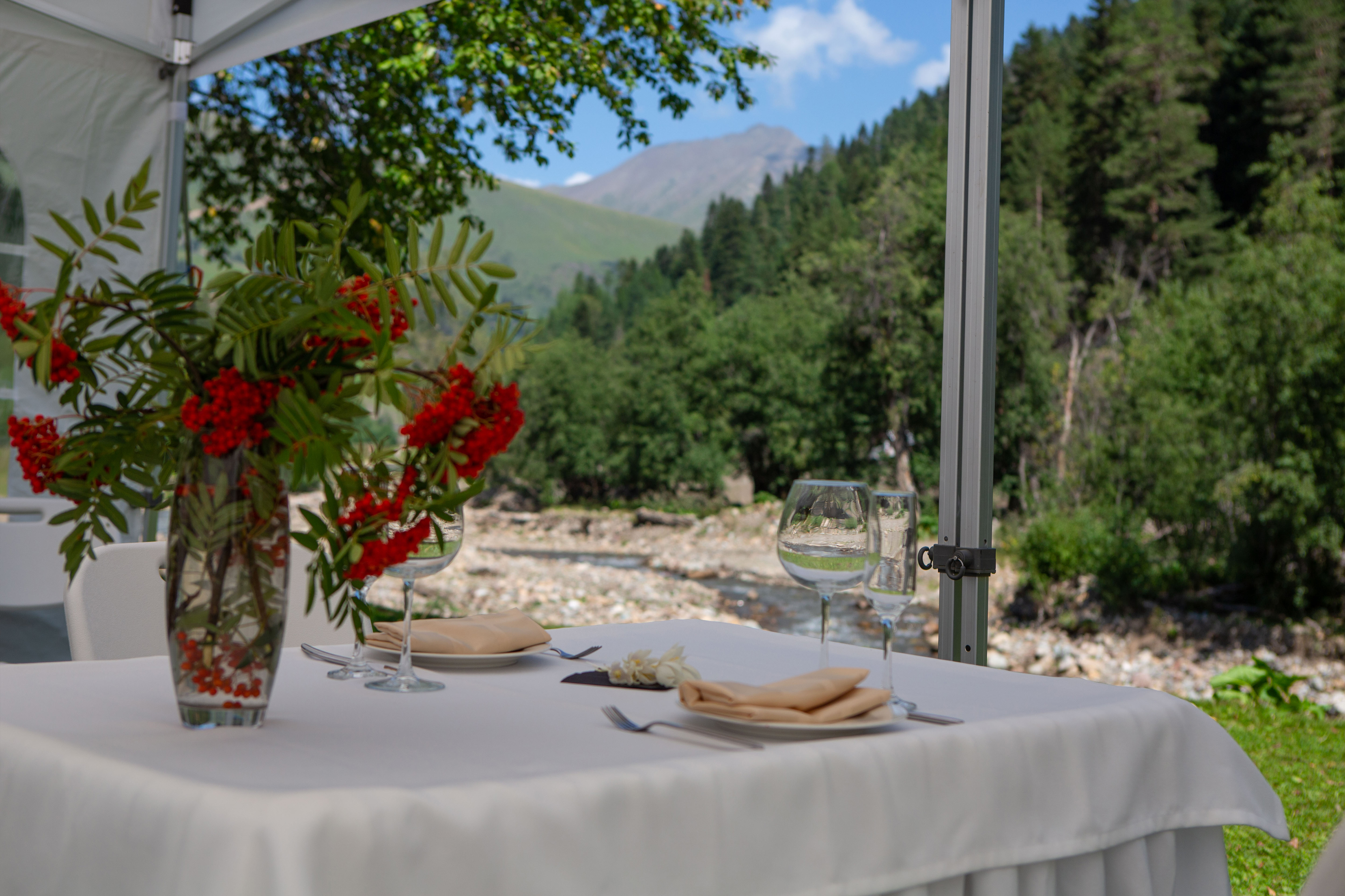 Для настоящих ценителей природы мы организуем кейтеринг в рамках выездных мероприятий на природу. Мы берем на себя все – посуду, мебель, сервировку, оборудование и персонал. На выездных мероприятиях мы создаем не просто еду, а впечатления. Представьте: свежий горных воздух, панорамный вид на вершины и умопорачительно вкусные блюда с акцентом на локальную кухню.