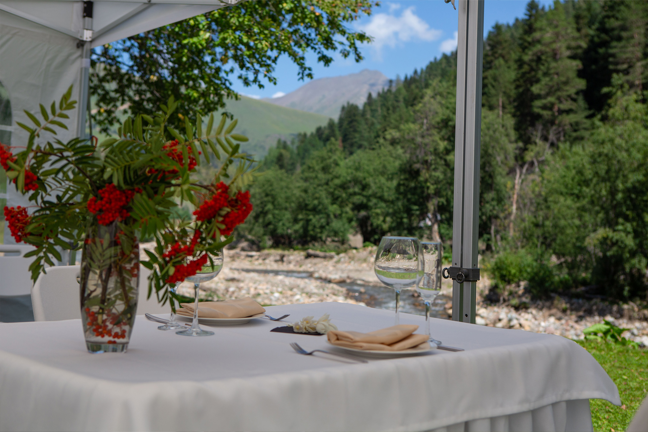 Для настоящих ценителей природы мы организуем кейтеринг в рамках выездных мероприятий на природу. Мы берем на себя все – посуду, мебель, сервировку, оборудование и персонал. На выездных мероприятиях мы создаем не просто еду, а впечатления. Представьте: свежий горных воздух, панорамный вид на вершины и умопорачительно вкусные блюда с акцентом на локальную кухню.